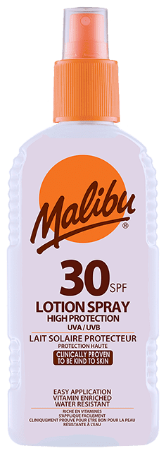 Malibu SPF30 Protective Lotion Spray provides protection from UVA and UVB rays.